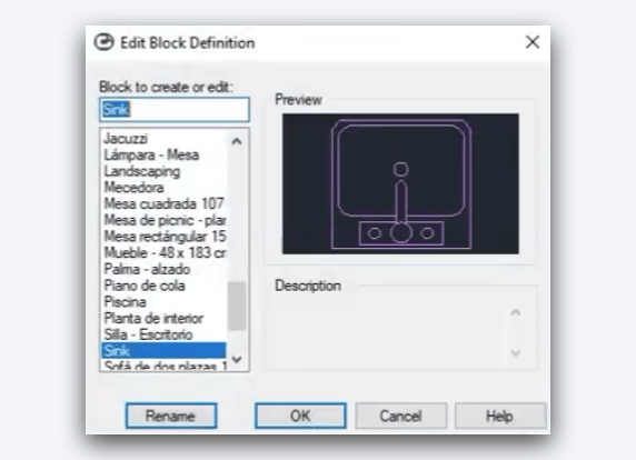 - Guarde o bloco e teste como se alinha com outros objectos no desenho